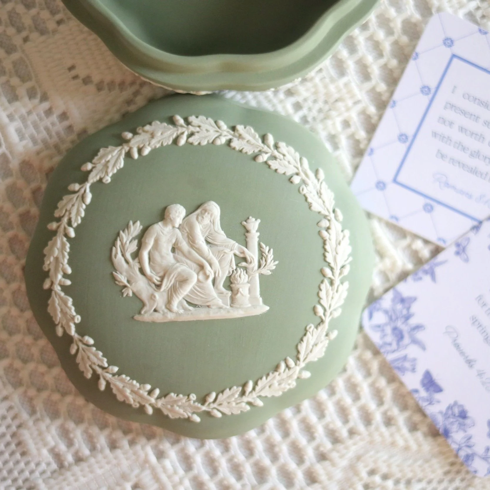 Scripture Cards in Vintage Wedgwood Green Jasperware Lidded Box